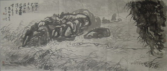 郑奇:“仁者乐山智者乐水”53X124CM