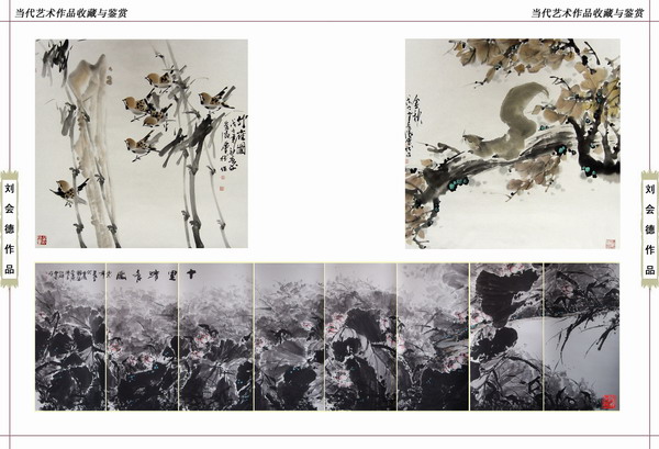 。 著名青年画家刘会德先生花鸟画 竹雀图、金秋、十里清香图(130X620CM) 。