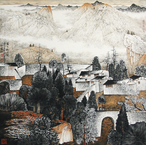 薛亮:不敢当,古城砖受法律保护。(笑,抽烟。)不过,你用谢赫的画理对照我的画,你会发现笔墨意境、移情造景等等说道我都有,没有这些就不叫中国画了。传统绘画的语言模式、笔墨图形都有一定的精神指向性,现代的画家能否合理地重新编排组合,传达一种符合时代审美取向的新的意蕴。就像你们写文章,需要良好的文字感觉和书写功底,包括修辞、技巧,否则既使激情澎湃,啊了半天也出不来好文章。