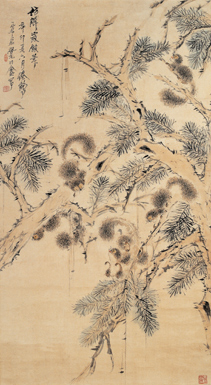 虚谷(1823-1896),安徽新安(今歙县)人。清代画家。僧人俗姓朱,名怀仁,移居江苏广陵(今扬州)。初任清军参将,后出家,名虚白字虚谷,号倦鹤、紫阳山民。以字竹,室名觉非庵、古柏草堂、三十七峰草堂。不茹素,不礼佛,也“从不卓锡僧寺”,往来于上海、苏州、扬州一带,卖画为业,是"海上画派"杰出代表人物。他携笔墨、着僧装,"闲中写出三千幅,行乞人间作饭钱",云游四海,清贫于世却笔墨人间,他行程之广、画作之多,己为当时罕见。他承古创新,另辟捷径,广集素材,勤奋垦作,终成一代巨擘。早年学界画,后以擅画花果、禽鱼、山水著名。风格冷峭新奇,绣雅鲜活,无一笔滞相,匠心独运,别具一格。亦能诗,有《虚谷和尚诗录》。传世作品有《梅花金鱼土2》、《松菊图》、《葫芦图》、《蕙兰灵芝图》、《枇耙图》等。
