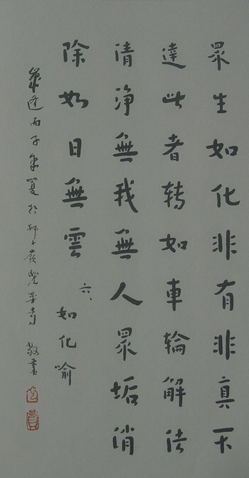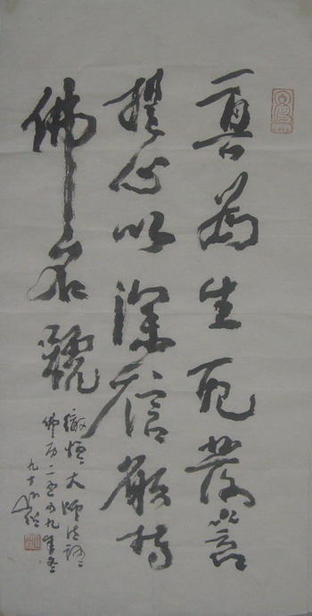 我国佛教界当代德高望重的著名高僧、佛教界国画大师,南京市佛教协会名誉会长,南京狮子岭兜率寺方丈圆霖法师,因病医治无效,于2008 年5月6日在南京市狮子岭兜率寺内圆寂,享年93岁。听到消息我内心非常难过,九十年代初,我经老友叶川林先生(已故)引见,拜访圆霖大师并皈依大师门下,赐法名正立。十几年来,我一直上山看望恩师,向师傅学习禅学和佛教书画理论。我怀念恩师,今天我整理师傅部分书画,供大家学习和缅怀,以此表达我的哀思。