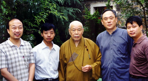 (右起)弟子立军、叶川林、李建华、江建宁与圆霖大师留影