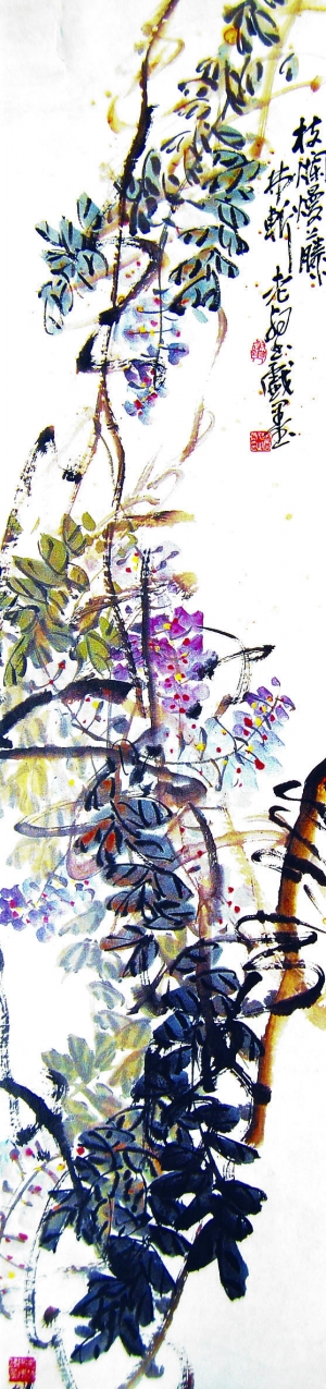 还有一个问题在此要特别说明:改款型“合制”不见得只针对于真迹作品来“深加工”,有些本身即是疑伪的成品,也可能被作成改款型“合制”之成品。举例说,我以前曾在一篇揭伪文章中提到一位擅长“仿制”吴昌硕画派几乎所有名家的造假“高手”,图一这件署名“老壑”(赵云壑)的画作就是那人的“杰作”。该成品画面有斑驳的霉渍,材质较陈旧,首次进南方某拍卖公司拍卖时间是在2004年秋季。之后发生的事就大出了我的意料:在北方另一家拍卖行2005年秋季拍卖会中,它容颜一改,成了图二这般模样。“它”的署名被篡改成了“老缶”(吴昌硕别名,操作者将原来的‘壑’字挖掉再补写上个‘缶’字),画面左上方还被添加了一行署“知亭”上款和“吴昌硕”下款的题款,原成品画面上的三方印章统统被替换,另新加盖了一方吴昌硕常用章。