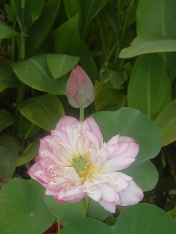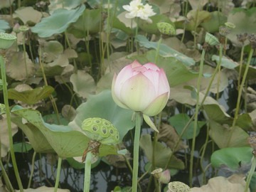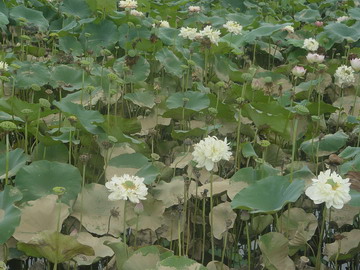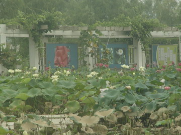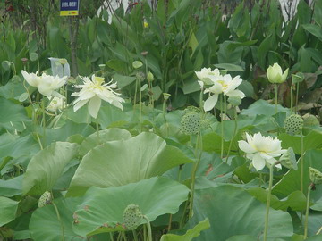 走进“艺莲苑”,数百亩的莲花印入眼帘,不是一花独放,也不是红白分明,而是一个五彩缤纷、百花齐放、百色交融的花花世界,把我们带进了一个博大的“莲”的世界。工作人员介绍:“艺莲苑”是由珠江镇五里村农民专家丁跃生教授创办的大型荷花基地,他也是我们中国花协荷花分会常务理事。“艺莲苑”莲花的品种已经超过七百余种,睡莲、碗莲、荷花、并蒂莲、年光莲、千瓣莲、菩萨华等等,最珍贵的品种就是千瓣莲,蓓蕾虽不太大,但能出乎大家的意料,重重叠叠竟有四千多个花瓣。