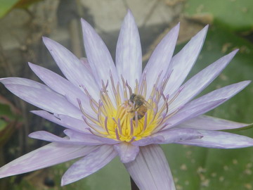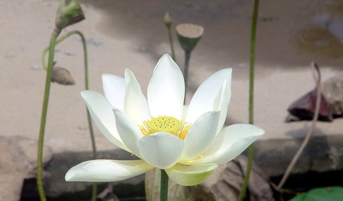我看到周围撒满一地的花瓣,走在荷花塘边,仿佛已经飘入了佛的世界,悟出了朴实、包容、无心、内雅千瓣莲美的境界,也是我们不断探求的最高境界。在“艺莲苑”巧遇江浦好友戴五四先生,他是江浦狮子岭兜率寺方丈圆霖大师的弟子,喜欢创作佛教题材的作品,如“深山藏古寺…”之类的山水画,圆霖大师也是我的皈依师,时常向师傅学习佛教书法绘画以及佛教理论,师傅时常送给我一些他佛教书画作品,达摩一苇渡江图、罗汉、观音大士、皆大欢喜的弥乐佛、山水、也有兰花、莲花等等,我还记得其中有两幅莲花作品的题跋是:美味的果实来自优良的品种因果相循定律不变、秋寻千莲幸得三枝千瓣心中旃檀香溢……