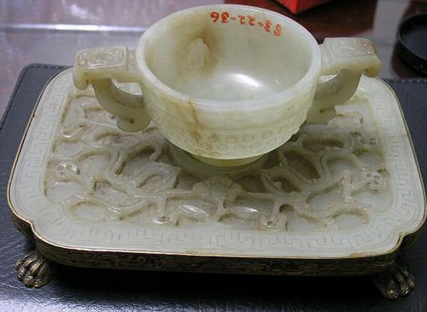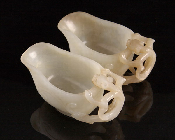 明代白玉螭龙对杯