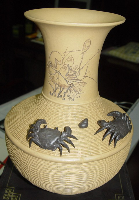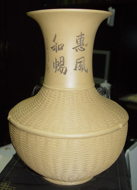 精美礼品转让:钱菊萍紫砂竹编花瓶、汉画像石、宜兴紫砂花瓶、扬州漆器