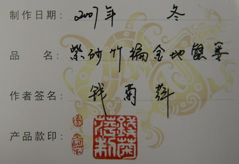 三、宜兴高级工艺美术师(国家系列)钱菊萍紫砂竹编花瓶