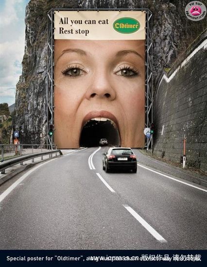 高速公路服务站广告:这幅令人惊讶的广告设在一个隧道的入口,