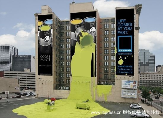 这家公司租用了三面墙、三辆车以及这家停车场,才得以完成这幅广告