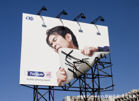 牙膏广告:为了说明使用Formula牙膏可以刷出“强健的牙齿”,