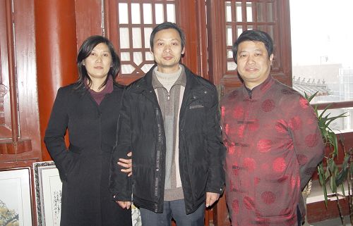 金陵山水画家周广中、苏珍夫妇与立军(右一)合影