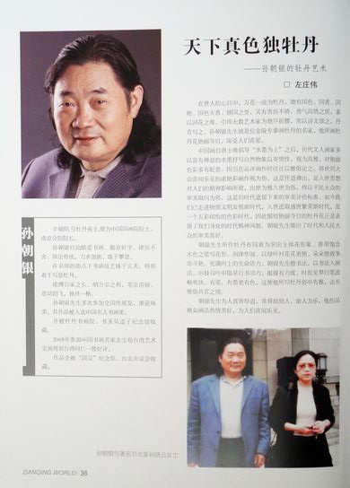 在世人的心目中,万花一流是牡丹,她有国色、国香、国艳、国色天香、倾国之誉,又有贵而不骄,贵气高情之质,素以国花之尊,引得无数艺术家为尽折腰,常以诗文她颂之,丹青写之,孙朝银先生就是位金陵专事画牡丹名家,他所画牡丹花艳丽夺目,深受人们喜爱。