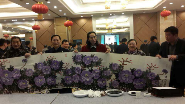 出席江苏省第十八届省市书画家迎新春团拜会创作丈二尺牡丹图