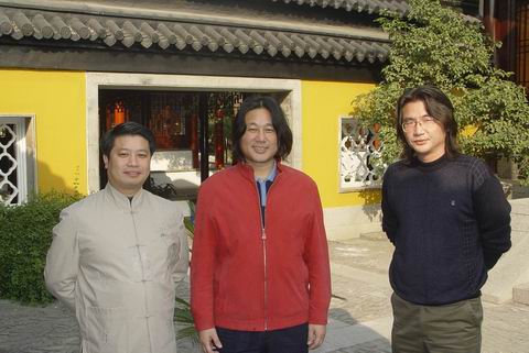 南京静海画院刘会德院长(右)和易经大师洪门望达先生(中)在一起