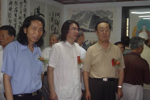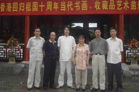 “庆祝香港回归祖国十周年当代书画名家邀请展”于二OO七年七月一日上午十时在南京静海寺纪念馆举行,出席活动的领导有原南京军区副司令员郭锡章将军,原南京军区副政委兰保景将军,江苏省红十字会常务副会长周加才同志,南京市下关区文化局副局长孙威同志,南京市下关区政协王自能同志,南京市文联书画研究院秘书长、国家一级美术师、南京静海画院名誉院长刘宇甲先生,南京市文联书画研究院副秘书长、国家一级美术师黄庭海先生,南京市文联书画研究院副秘书长、高级画级李正刚先生,南京静海寺纪念馆馆长田践同志,洛阳牡丹书画院副院长、南京静海画院名誉院长罗玉祥先生,中国书协会员、山东省青州市书协副主席武晓临女士,南京芳草园书画院院长蔡志芳女士,南京艺海潮书画院院长方军先生,南京艺海潮书画院秘书长夏志诚先生以及社会各界人士、书画名家、企业家等三百多人参加开幕式。
