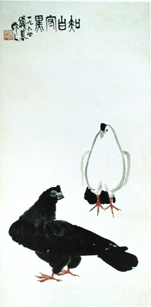 四十年代,吴作人以油画和水墨画并举,油画的民族化,已略现端倪。到五十年代,他的油画已达炉火纯青之境,更加富于民族气派;然而,他的绘画重心已经转移,以中国画创作为主,作品完全趋于成熟,体裁更为多样,除了牦牛、骆驼以外,熊猫、山鹰、金鱼、鸽子、仙鹤等崭新的艺术形象相继问世,它们寄托着画家辽远旷阔的胸襟和无羁无绊的性情。吴作人终于完成了他的艺术创作向中国审美体系的回归,从而登上了艺术的巅峰。