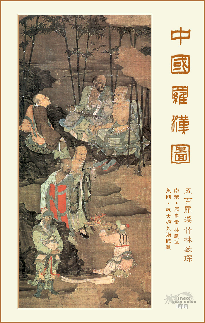 第一是众多罗汉的组合像,如十大弟子像(根据《维摩经·弟子品》所记的释迦如来的十大弟子)、十六罗汉像(根据《法住记》所记受释迦如来付嘱长住世间的十六弟子)、五百罗汉等。十八罗汉像是从十六罗汉像发展而成,可能是中国画家增绘了《法住记》的作者和译者,但是很难考了。至于古画卷上所看到的四罗汉像、六罗汉像、十四罗汉像等都是十六罗汉家的残本。