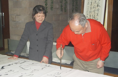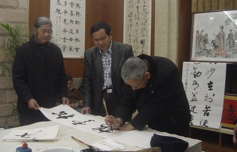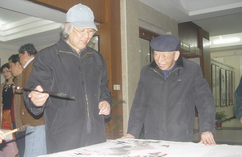 南京市美术家协会顾问刘之光先生       青年书画家营华林先生(右)