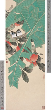 喻继高的工笔重彩花鸟画近师陈之佛先生,远祖五代两宋,更直接以造化为师,而熔铸以个人的生活感情。从他的花鸟画中,我们可以感受到大自然的蓬勃生机和新时代的昂扬诗情。他很少去描绘罕见的奇花异草、珍禽异兽,而是着眼于生活中常见的花果虫鸟,给人一种朴实亲近的乡土感情。他的画没有古代院体画那种恬淡幽远的隐逸气、江湖味,它是入世的,属于我们新的时代和人民的艺术。繁盛、充盈、丰实、欢乐、光彩照人、典雅秀丽、风流蕴藉、活泼天真、雍容豁达、泱泱大度,这就是继高工笔重彩花鸟画的基调和风格。读他的画,如同聆听一部华彩乐章,或者说是急管繁弦的江南丝竹,是对大自然的讴歌,对生活的赞颂,对美和爱的咏叹,唤起人们热爱生活、热爱劳动、热爱乡土、热爱人民的美好感情和高尚情操,因为花香鸟语、春华秋实,是大自然的赐予,更是世世代代劳动人民用血汗浇灌的祖国沃土的绿色生命。画是无声诗,于无声处我们感受到时代的脉搏跳动,听到画家的心声,这是一颗人民艺术家炽热的赤子之心,他对祖国一草一木爱得那样执着和深沉,一笔一画都充满感情。