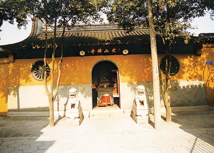 文山寺座落在苏州城内西北方阊门文丞相弄内,面临东中市,背枕挑花坞。创建于南宋。其原址为文山寺、潮音庵、云林庵三寺共处之地,历经沧桑,至清初己近毁颓。民国初年,三寺合并为一,额其名曰"文山潮音禅寺"。1958年文山寺改为比丘尼道场,苏州城内三十余座尼众寺庵合并于此。"文革"中文山寺被工厂占用。