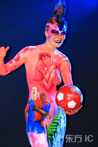 人体彩绘迎接欧锦赛