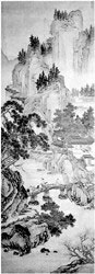 明代画家周臣,字舜卿,号东村。吴(今江苏苏州)人。生卒年不详,寿八十余岁。他早年从同郡陈暹学画,上溯南宋李唐、刘松年、马远、夏圭诸家,与明初的戴进并驱。人们都熟悉他的两个学生:唐寅和仇英的画风,但是对于周臣的画,却似乎有些陌生。等到见了,又诧异于其面目与唐寅何其相似。其实,流传至今的众多的唐寅的画,有许多就是由周臣代笔的,这即使在当时也不以为怪。只是难为了后人,以至今日我们很难从署名“唐寅”的画中分辨出孰归唐,孰归周。要论绘画的功力,周臣当不在唐寅之下,而且周臣也读书,能作诗,只是他自谓“但少唐生三千卷书”而已。