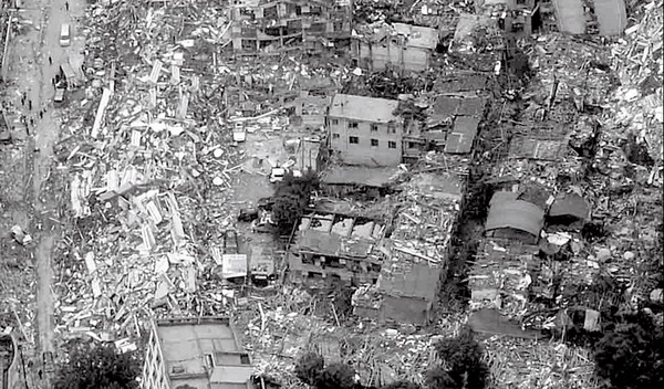 (右下图)受损严重的北川县擂鼓镇五星村六组灾民在接受心理疏导
