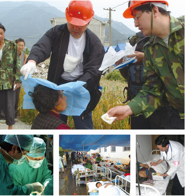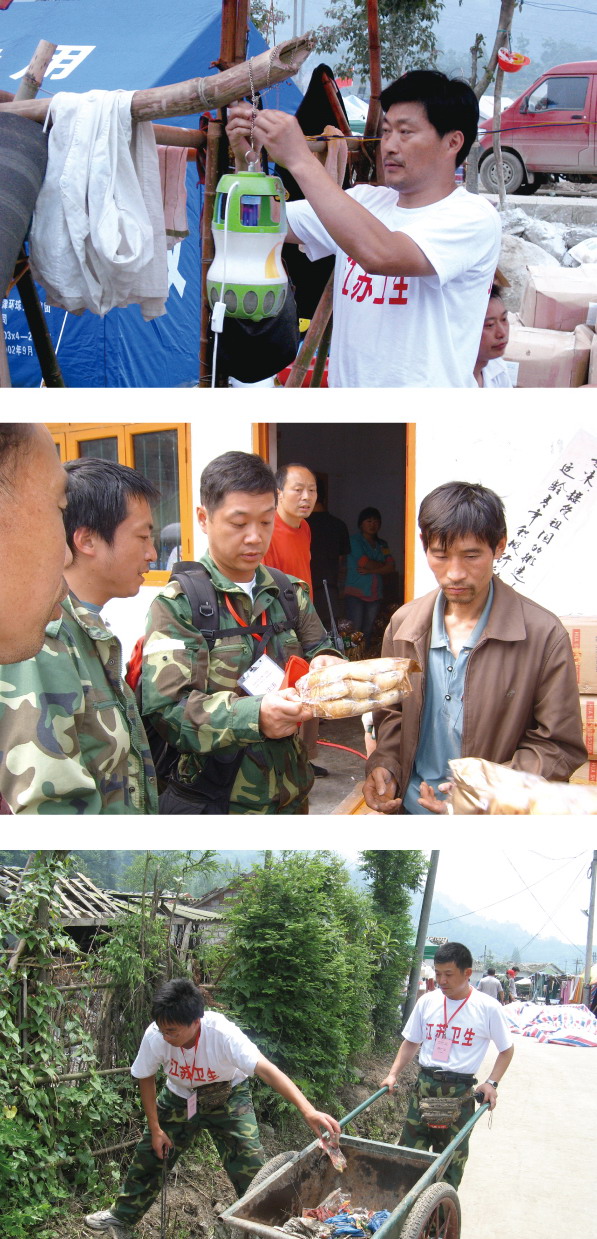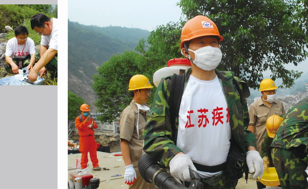 (左上图)江苏赴四川灾区卫生防疫应急救援队队员