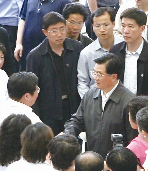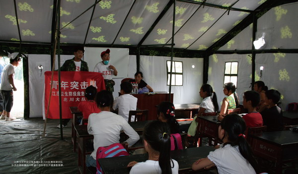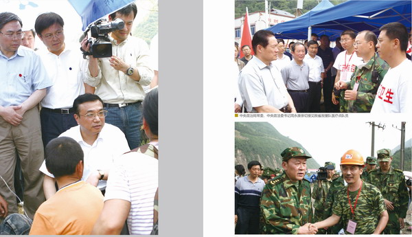 (左图)卫生部部长陈竺慰问什邡大队江苏卫生防疫应急驻地