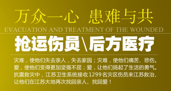 从来没有一种灾难这样惊天动地;从来没有一种悲伤这样撕心裂肺。灾情就是命令,2008513,江苏省卫生系统紧急动员、迅速行动,在地震发生不到24小时的时间内,江苏医疗队抵达地震灾区,成为受卫生部指派的第一支到达灾区的外省医疗队。