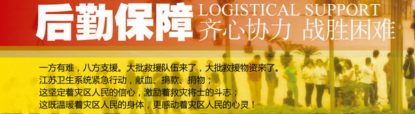 一方有难,八方支援。大批救援队伍来了,大批救援物资来了。江苏卫生系统紧急行动,献血、捐款、捐物;这坚定着灾区人民的信心,激励着救灾将士的斗志;这既温暖着灾区人民的身体,更感动着灾区人民的心灵!