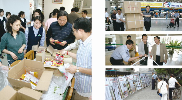 (左下图)江苏赴四川灾区卫生防疫队员指导当地灾民