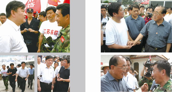 (右下图)江苏省卫生厅副厅长陈华在南通看望灾区伤员