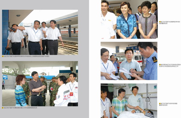 (左上图)江苏省卫生厅副厅长吴坤平在徐州火车站站台上
