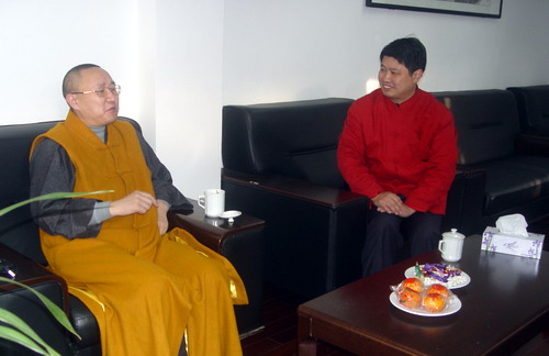 居士正立与隆昌寺方丈心平大和尚一起品茶