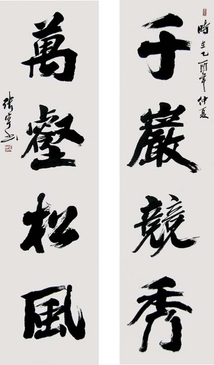 张宁的绘画继承家父遗风,雅俗共赏,其书法功底深厚,用笔凌厉、古朴,结构平中见奇,书风生辣,又善作大幅巨字,魄力之大,实为观止。