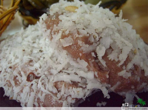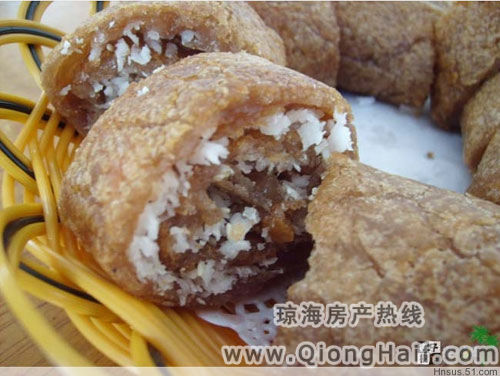 高粱粑中夹着一层浓浓的椰子馅,吃的唇齿留香....