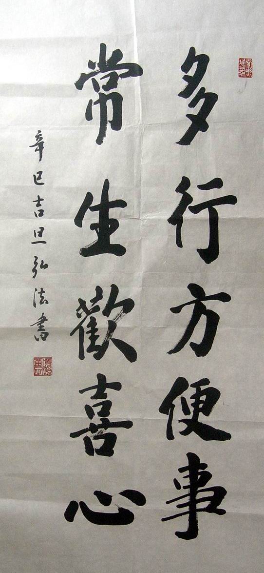 弘法:多行方便事常生欢喜心 45X96CM