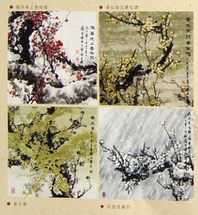 左上:梅华枝上春如雪;右上:香似海沉黄如酒;