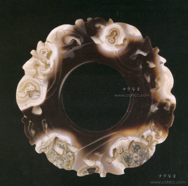 。 31、玛瑙璧 西晋.jpg (76.15 KB) 2010-4-2 20:54 。 31、玛瑙璧 西晋 直径9.7,孔径2.8厘米 河南省偃师市山化乡玉瑫村出土,现藏于洛阳博物馆 透雕勾连盘龙纹,通体抛光。