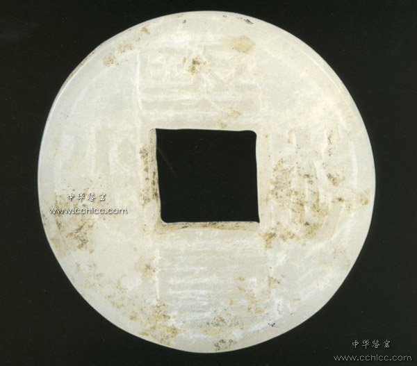 。 42、玉币 六朝.jpg (58.93 KB) 2010-4-2 20:54 。 42、玉币 六朝 北京市昌平区清河绒毯厂外窑堆出土,现藏于首都博物馆 白玉质,润洁光亮,方孔圆钱式,钱廓微隆起,两面碾琢减地阳起楷书,一面为“野游重光”四字,一面为“疾疫鬼名”。字纹中夹有土锈,玉币方孔,边廓的锐感及“野”字虽有汉代遗风,但琢刻的朱文楷书,字体方正清雅,刀法平直流畅,正是六朝时期篆刻的特点,这枚玉币为辟邪乞福而作,后作冥钱。