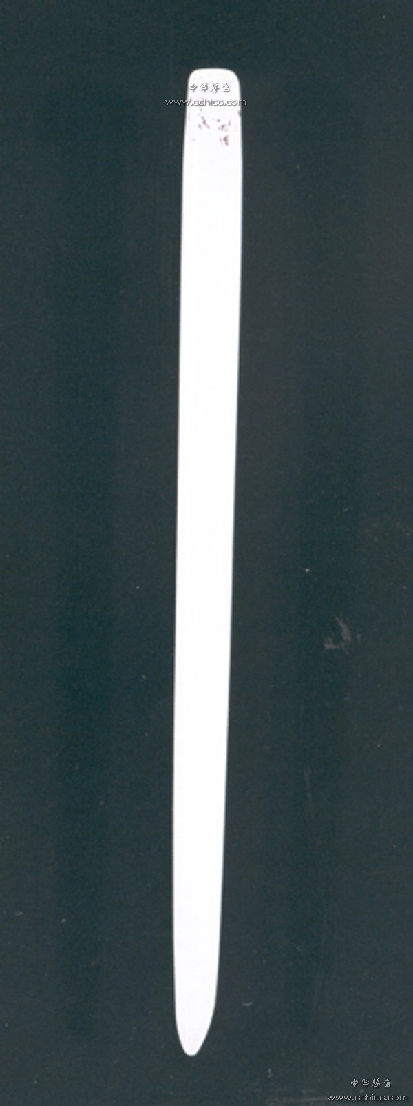 。 49、魏晋时期 玉笄.jpg (82.51 KB) 2010-4-2 20:54 。 49、魏晋时期 玉笄 长10、宽0.6、厚0.5厘米 青海省西宁市南滩砖瓦厂出土,现藏于青海省文物考古研究所 白色,玉质细腻温润,晶洁透亮。四棱柱长棒菜。一头大浑圆,一头小而尖。素面,通体抛光。