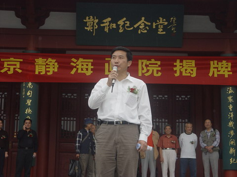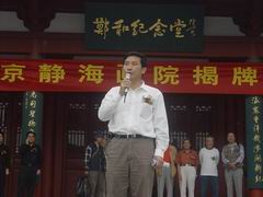 在丹桂飘香,喜迎国庆的前夕,南京静海画院揭牌仪式于2006930日在南京市下关区静海寺隆重举行,南京市新闻出版社党组书记施正东、下关区有关部门领导吴有康、姜东林、高淳县农工部部长夏功保、高淳县建设局戴正森主任、特邀著名书画家、艺术家:俞律、吴国亭、刘之光、刘宇甲、岳鸿武、李斌炎、杨远威、南京芳草书画院院长蔡志芳、南京江东诗书画院院长方云岫和全省书画界人士200多人出席揭牌活动。