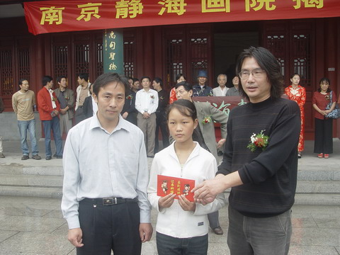 在南京静海画院揭牌活动中,静海画院刘会德院长代表画院同仁向贫困学生捐款,体现了静海画院办院宗旨,并表示象这样的社会慈善活动要不断地进行下去。