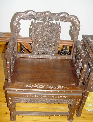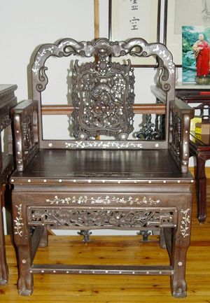 仿清·透雕福寿嵌螺钿红酸枝太师椅之太师椅