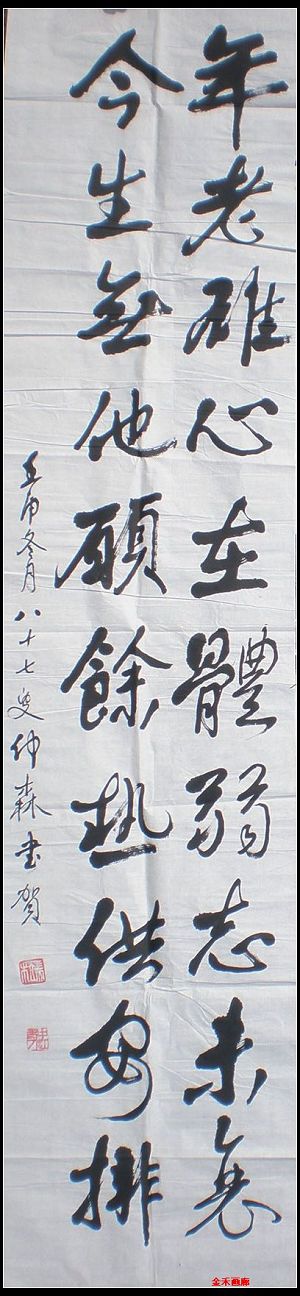 徐崇森先生,原名徐丛生,字茂然,以字行,1959年2月生于南京。徐茂然先生少年时曾被南京师范大学杨建候教授收为入室弟子学习绘画,又从草圣林散之、冯仲华等名家学习书法,87年徐茂然先生毕业于无锡书法艺专,诸体兼擅,尤长于行草与楷书,纵逸洒脱,又时出新意,讲究自然,不主故常,徐茂然先生楷书初学欧、颜、赵后专攻魏碑、汉隶。行书以二王为宗,偏钟于《十七贴》、《淳化阁贴》、《兰亭序》等。