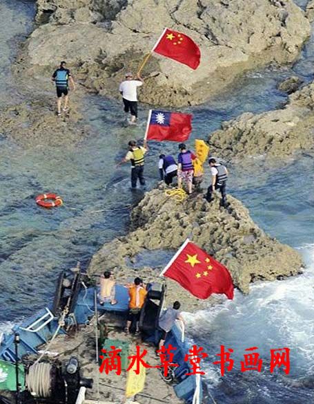 7名保钓人士从船上跳入海中,游泳到岸边登上了钓鱼岛。他们随身携带了中国国旗、台湾、香港、和澳门地区的旗帜,并在钓鱼岛上竖起中国国旗。