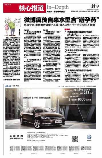 自来水中含有避孕药?昨天新浪微博认证为“原美国夏威夷大学环保专家董良杰”的网友发了一条微博:“中国是避孕药消费第一大国,不仅人吃,且发明了水产养殖等新用途。避孕药环境污染可导致野生动物不育或降低再生能力。学者对饮水里雌激素干扰物研究发现,23个水源都有,长三角最高。另外,它们作为持久污染物,一般水处理技术去不掉;人体积累,后果难料……”此条微博一出,立即在网上被疯传,到晚上6点,这条微博被转发了7800多次,评论也达1300多条。喝水就会导致“不孕不育”?这让很多网友感到有些可怕。