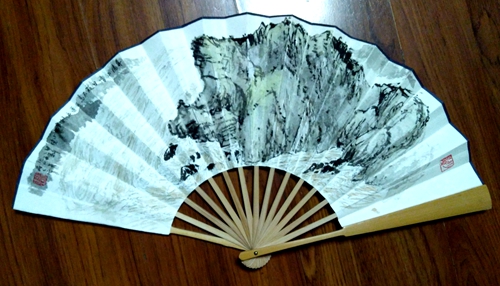 张建山:“奔腾凶涌日夜不息”扇面正面